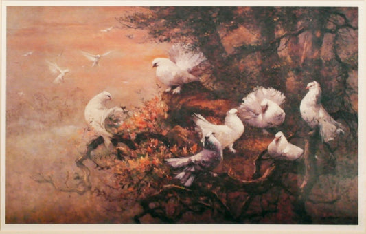 From 1969 onwards, he was commissioned by the Singapore Government to paint several works for presentation to foreign dignitaries as state gifts. His paintings of Singapore Chinatown were selected by Singapore Telecommunications Authority for reproduction as postage stamps. In 2005, his paintings were selected by the Singapore Mint to be reproduced into coins, First Day Cover, EZ Link Cards, Cash Cards, etc. He was also commissioned by government ministries and statutory boards to paint large wall murals including large paintings of pigeons for the Singapore Embassy in Washington D.C., the ASEAN G7 Secretariat Office in Jakarta, and the Headquarters of Airlines Worldwide located in Montreal, Canada.