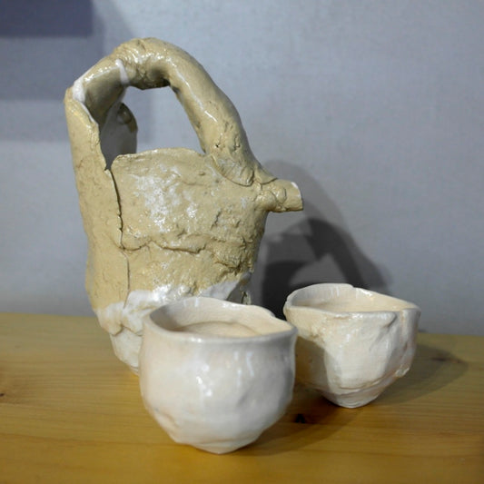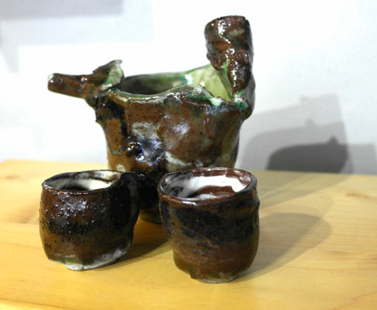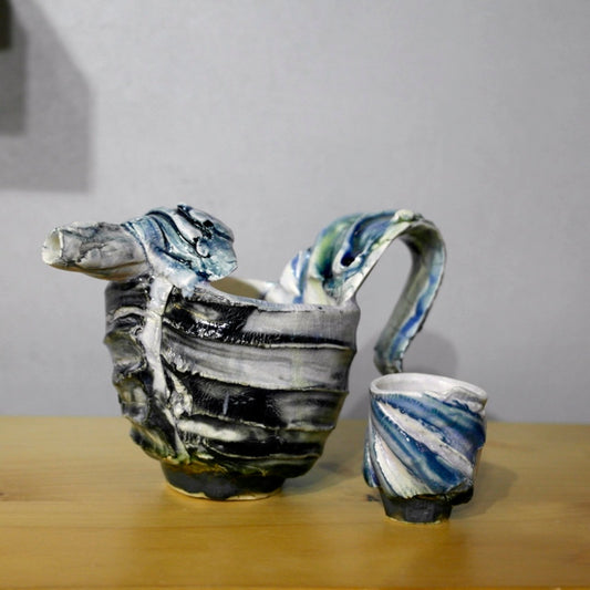 Handmade Teapot and 2 Tea Cups (Emerald & Turquoise Tone)