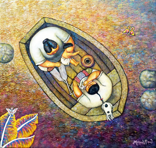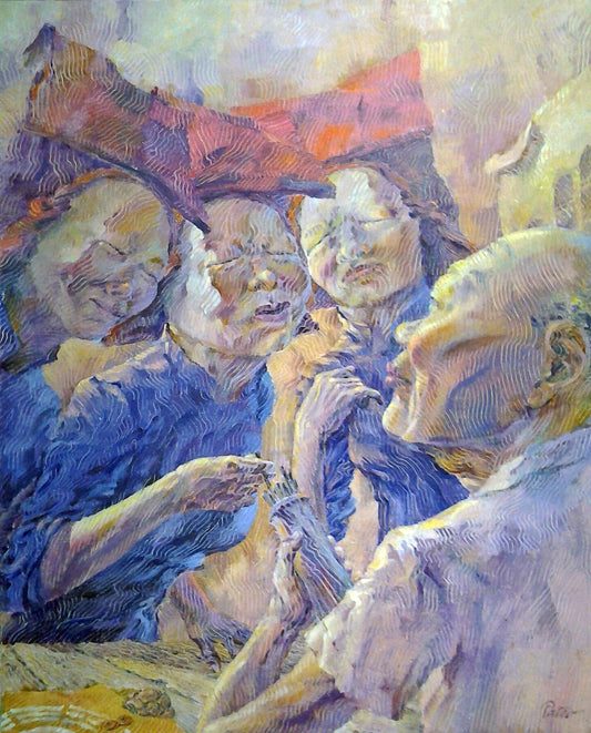 We have seen coolie men, samsui women, and tradesmen of the time strong in their element. But we have yet to see their lives outside of labour. Each artwork shows how through all the unwavering hard work, their downtimes are spent leisurely with their loved ones or engaging in hobbies.