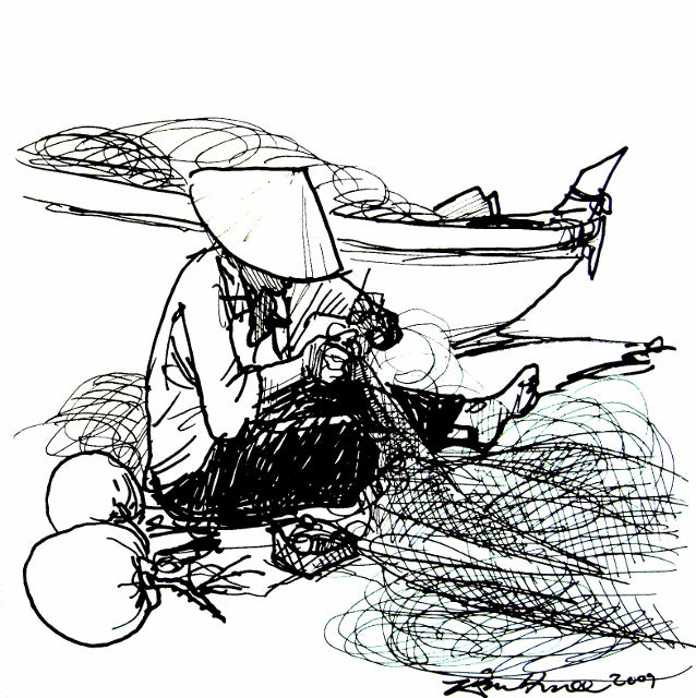 Mending Nets by the Sea