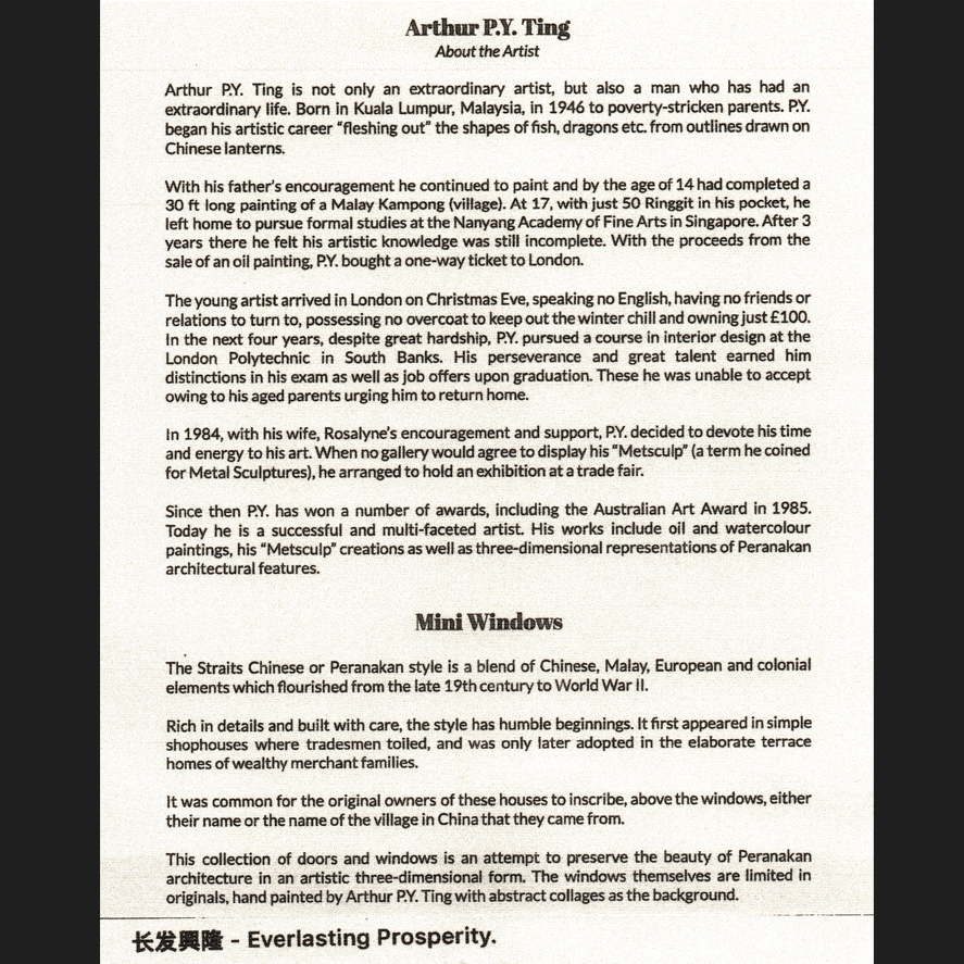 SIGNIFICANCE OF PERANAKAN MINI-WINDOWS
